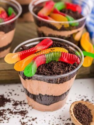 Individual Dirt Cups – Layer ingredients in small clear cups for easy serving at parties.