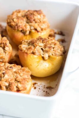 Continue baking for another 10–20 minutes, depending on apple size, until they’re tender when pierced with a knife and the filling is golden and bubbling.