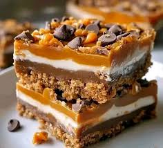Butterfinger Caramel Crunch Bars are dessert bars inspired by the famous Butterfinger candy, known for its crispy peanut butter core and chocolate coating. These bars typically feature: