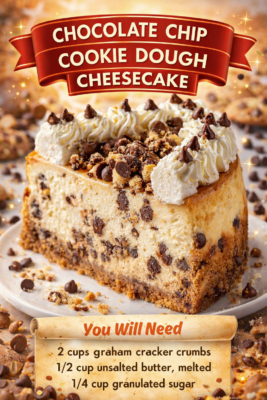 If you love classic chocolate chip cookies and rich, creamy cheesecake, this dessert brings the best of both worlds together. Chocolate Chip Cookie Dough Cheesecake features a buttery cookie crust, smooth vanilla cheesecake filling, and chunks of safe-to-eat cookie dough folded throughout. It’s indulgent, impressive, and perfect for celebrations or cozy weekends at home.