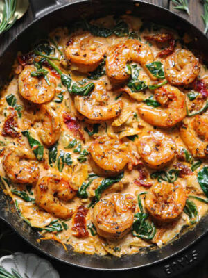 Rich, garlicky, and bursting with flavor, Creamy Sun-Dried Tomato Shrimp with Spinach Pasta is a quick yet elegant dish perfect for weeknight dinners or special occasions. Tender shrimp, vibrant spinach, and tangy sun-dried tomatoes come together in a silky cream sauce that coats every bite of pasta beautifully.