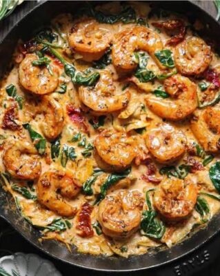 This Creamy Sun-Dried Tomato Shrimp with Spinach Pasta is the kind of dish that feels fancy but comes together fast—perfect for weeknight dinners, date nights, or when you want to impress without stress. Juicy shrimp, tender spinach, and tangy sun-dried tomatoes are tossed in a silky garlic-Parmesan cream sauce that clings beautifully to pasta.