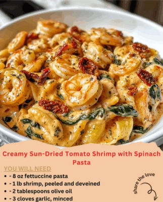 Creamy Sun-Dried Tomato Shrimp with Spinach Pasta