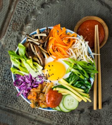 Try dolsot bibimbap – Use a hot stone bowl for crispy rice at the bottom.