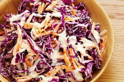 Coleslaw is a shredded cabbage salad traditionally dressed with a creamy or vinegar-based dressing. Its origins trace back to European cabbage salads, but today it’s especially popular in North American cuisine.