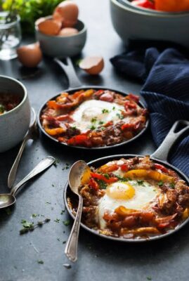 Shakshuka is a one-pan dish made of eggs gently poached in a thick, spiced tomato and pepper sauce. Its origins trace back to North Africa and the Middle East, but today it’s enjoyed worldwide.