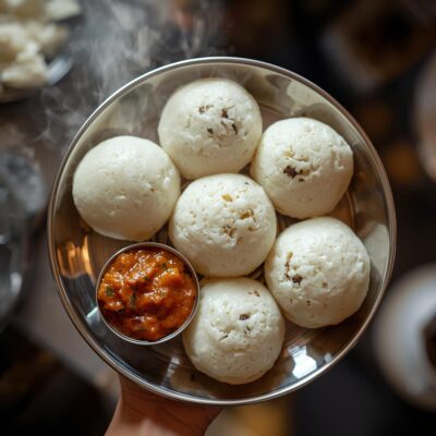Idlis are round, steamed rice cakes that have been a breakfast staple in South India for centuries. They are made by steaming a batter of rice and urad dal (split black gram), creating a soft, fluffy texture that pairs beautifully with chutneys and sambar (a spiced lentil stew).
