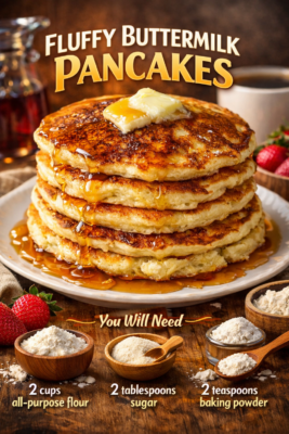 Few breakfast dishes are as universally loved as Fluffy Buttermilk Pancakes. Whether you’re enjoying a relaxed Sunday brunch in the United States, a cozy weekend breakfast in the United Kingdom, or a comforting morning treat in Canada, these light, airy pancakes never fail to impress. Golden on the outside, soft and tender on the inside, and perfectly balanced between sweet and tangy—fluffy pancakes made with buttermilk are a timeless classic.