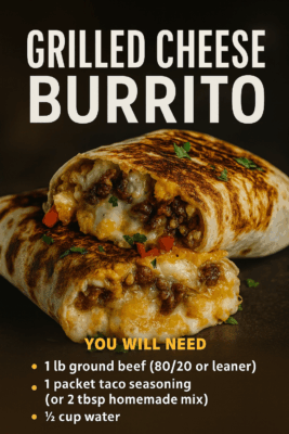 Whether you’re cooking for yourself in a small flat, feeding a family in a suburban home, or making late-night snacks with friends in a dorm, this grilled, cheese-packed burrito is easy to prepare, budget-friendly, and endlessly adaptable.