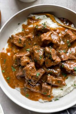 Browning the beef first deepens the flavor and creates a richer gravy.