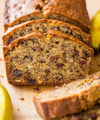 Chocolate Chip Banana Bread: Fold ½ cup chocolate chips into the batter.