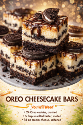 Whether you stick to the classic version or experiment with fun variations, Oreo cheesecake bars are a timeless treat that never goes out of style—simple to make, easy to serve, and impossible to resist.