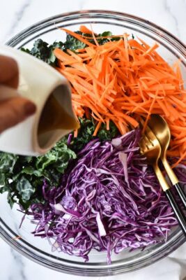 Set aside: Once your cabbage is shredded, set it aside while you prepare the dressing.