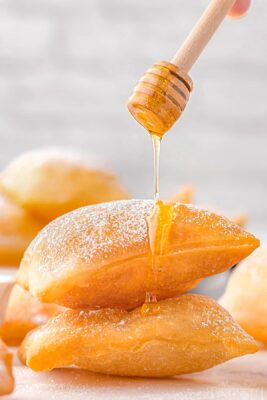 These golden puffs are soft inside and crispy on the outside — kind of like a cross between a doughnut and a pastry pillow. Traditionally, they’re served with honey drizzled on top, though you can also enjoy them with cinnamon sugar, powdered sugar, or even stuffed with savory fillings.
