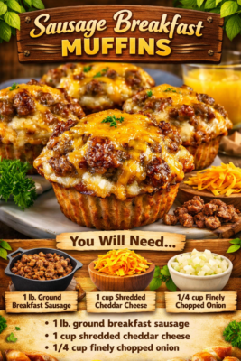 Easy to customize and ideal for meal prep, these savory muffins offer endless flavor possibilities and dependable results. Whether you’re preparing breakfast for the week, hosting a brunch, or simply craving a warm, hearty start to your day, Sausage Breakfast Muffins are a simple recipe that delivers big comfort and convenience in every bite.