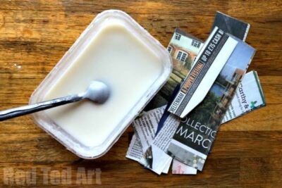 Mix 2 parts glue to 1 part water until smooth. Use the same dipping and layering process.
