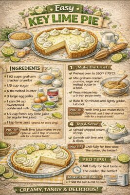 Whether you’re a beginner baker or a seasoned chef, this recipe is straightforward, requires minimal ingredients, and delivers impressive results. From its silky filling to the perfectly crunchy crust, this pie is the ultimate crowd-pleaser. In this guide, we’ll break down everything you need to know to make a stunning key lime pie that’s creamy, tangy, and absolutely irresistible.